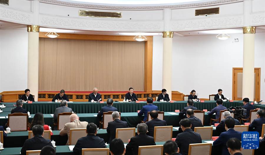 中共中央政治局常委、全國(guó)政協(xié)主席王滬寧,中共中央政治局常委、中央辦公廳主任蔡奇出席座談會(huì)。